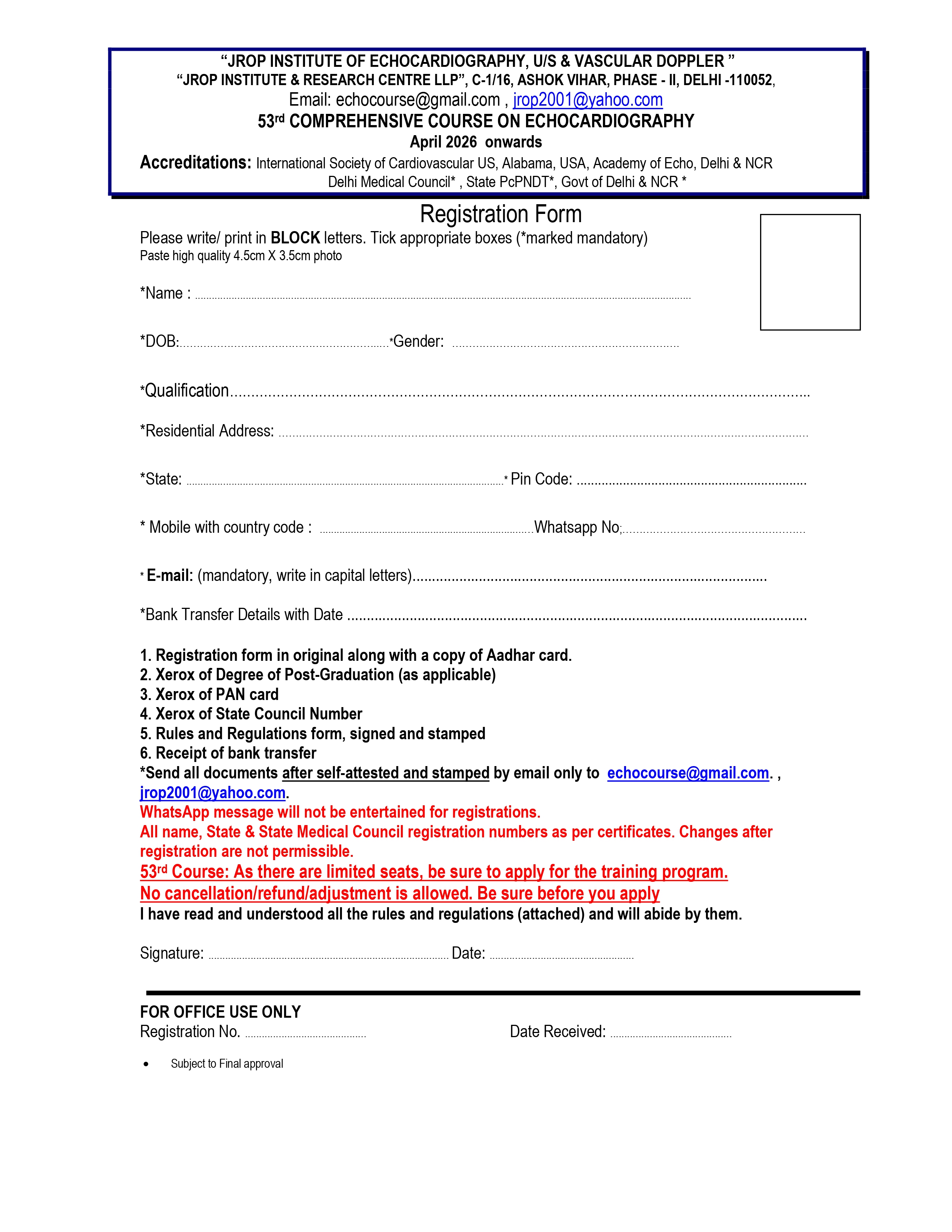 1. Send the 2 copies of registration form along with documents.